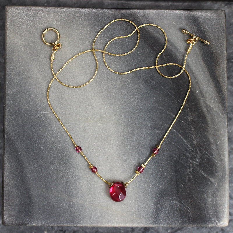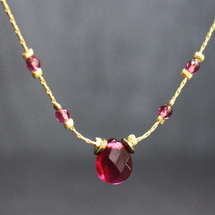 Laiton doré à l’or fin, opaline teintée et pâte de verre.