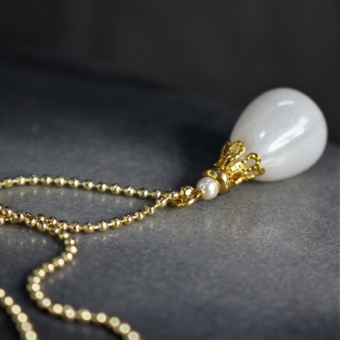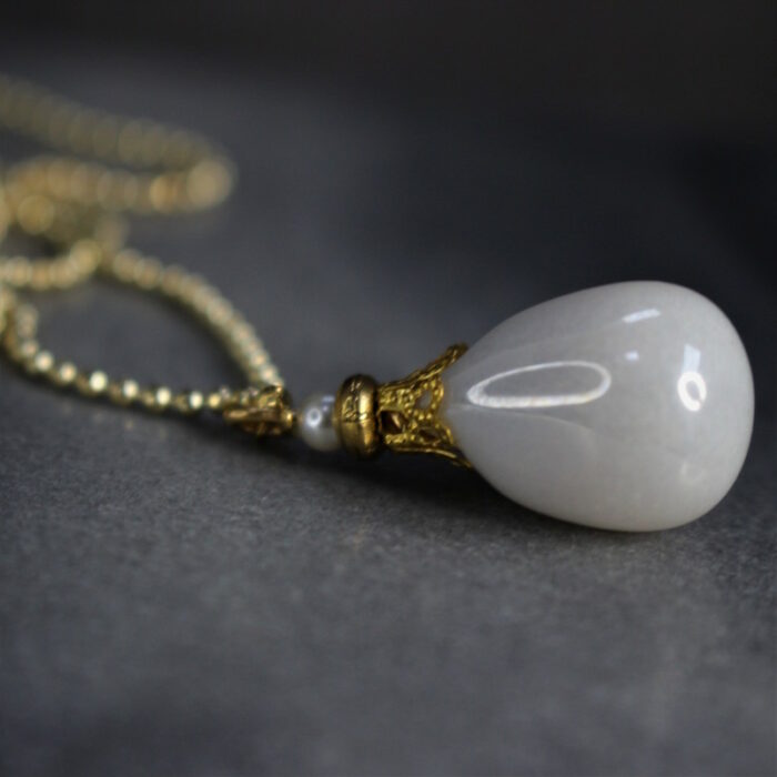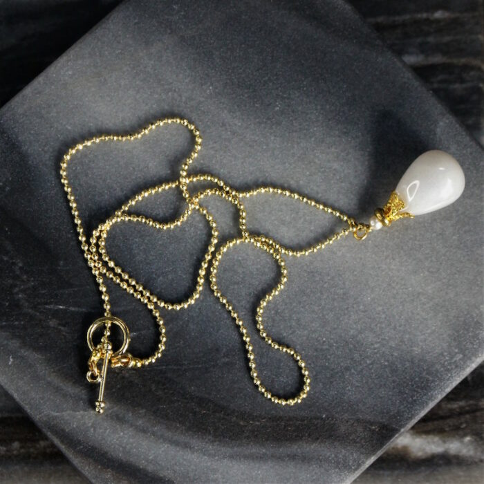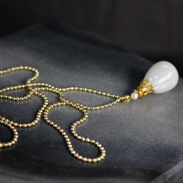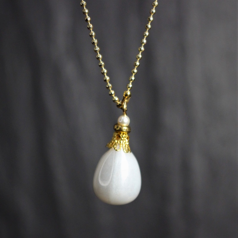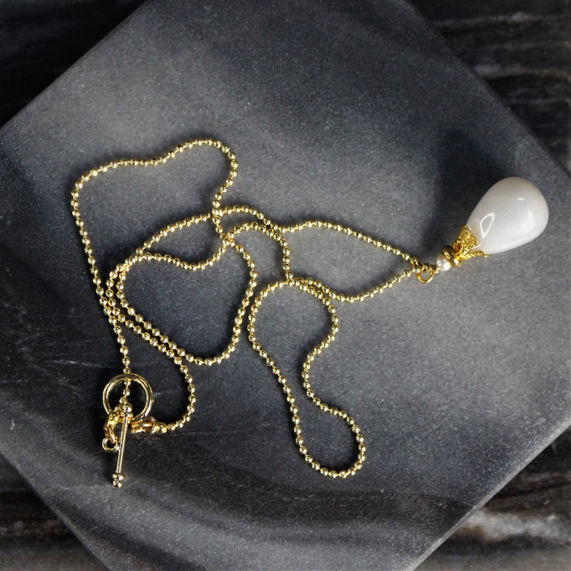 Laiton doré à l’or fin et céramique. Longueur de la chaîne: 47 cm Hauteur de pendentif; 3 cm