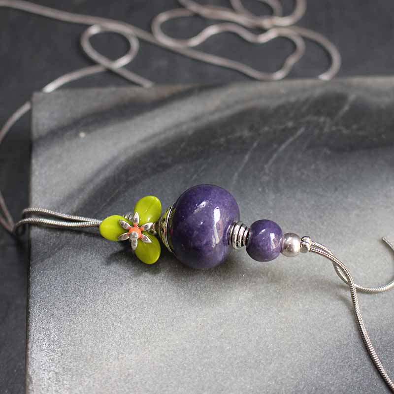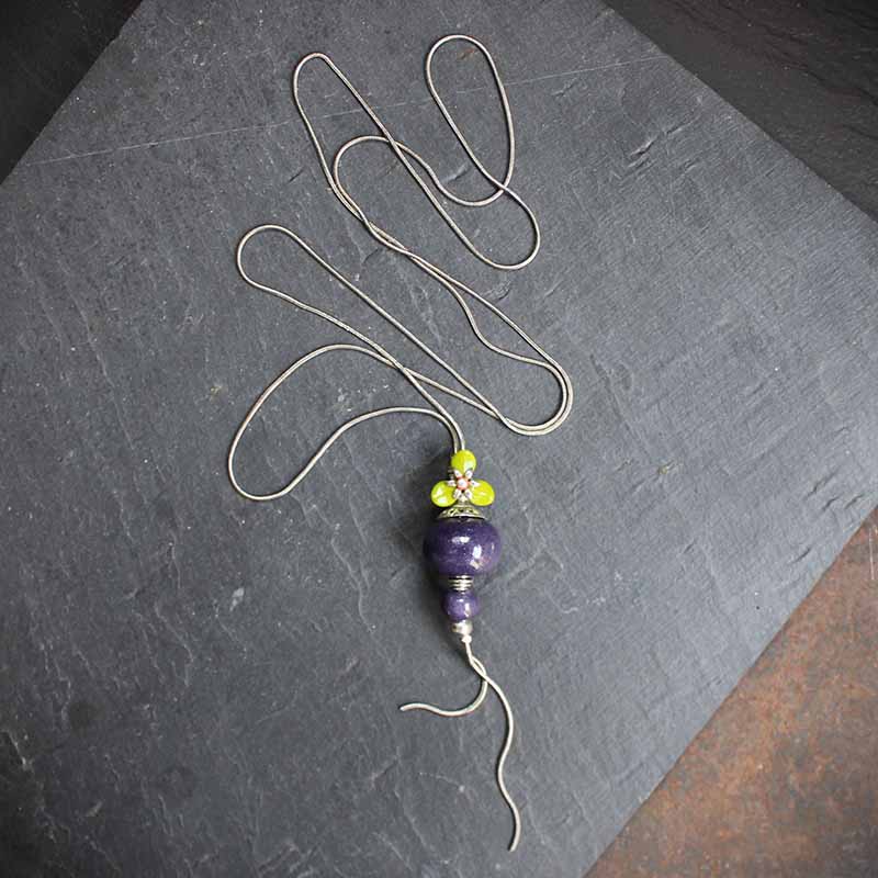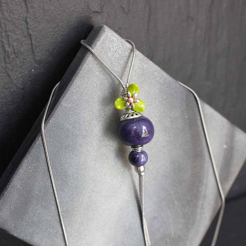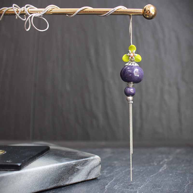 Céramique, pâte de verre et laiton argenté sans nickel,