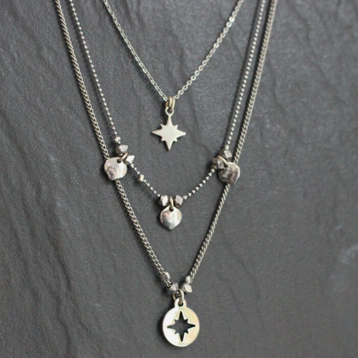 Acier inoxydable et laiton argenté sans nickel.