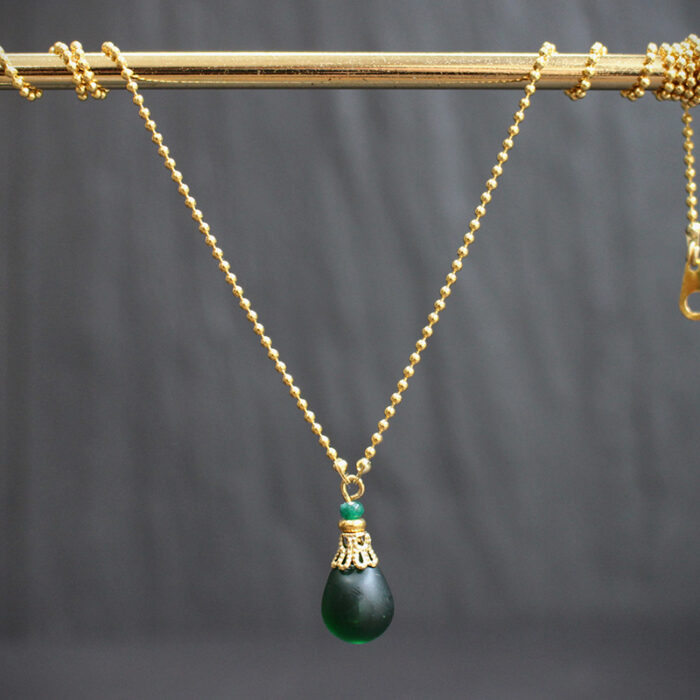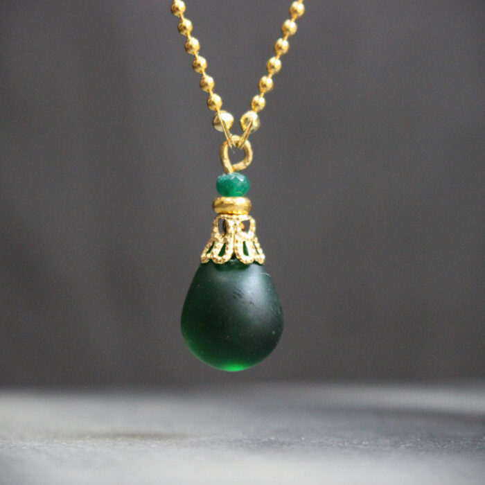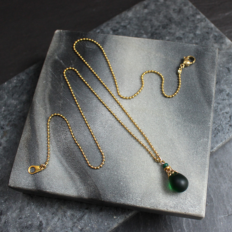 Acier inoxydable, laiton doré à l’or fin et pâte de verre.