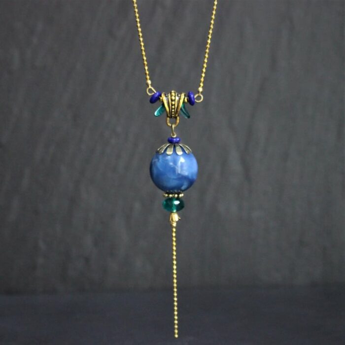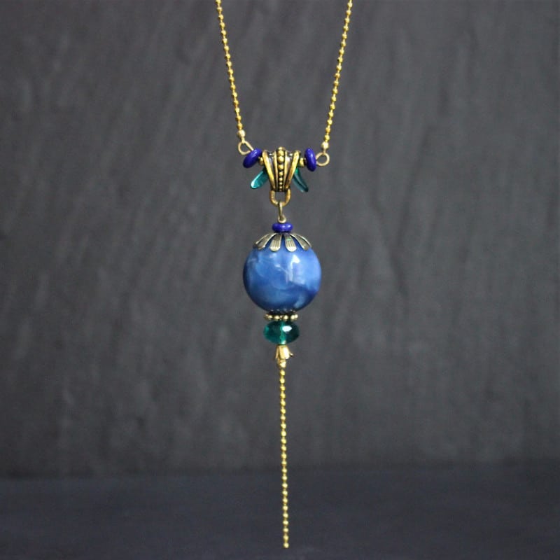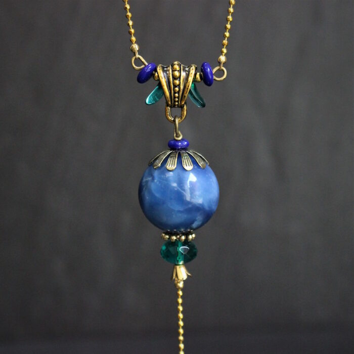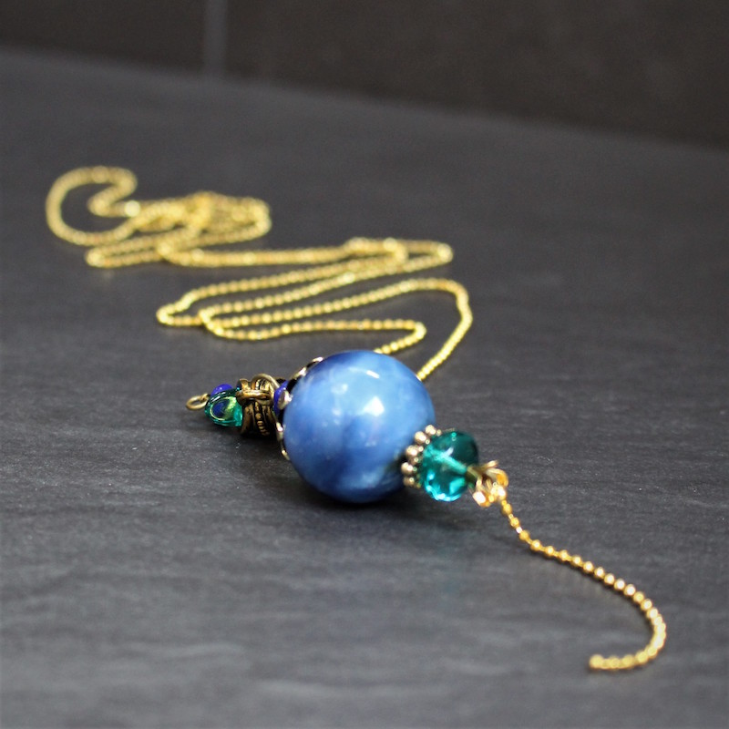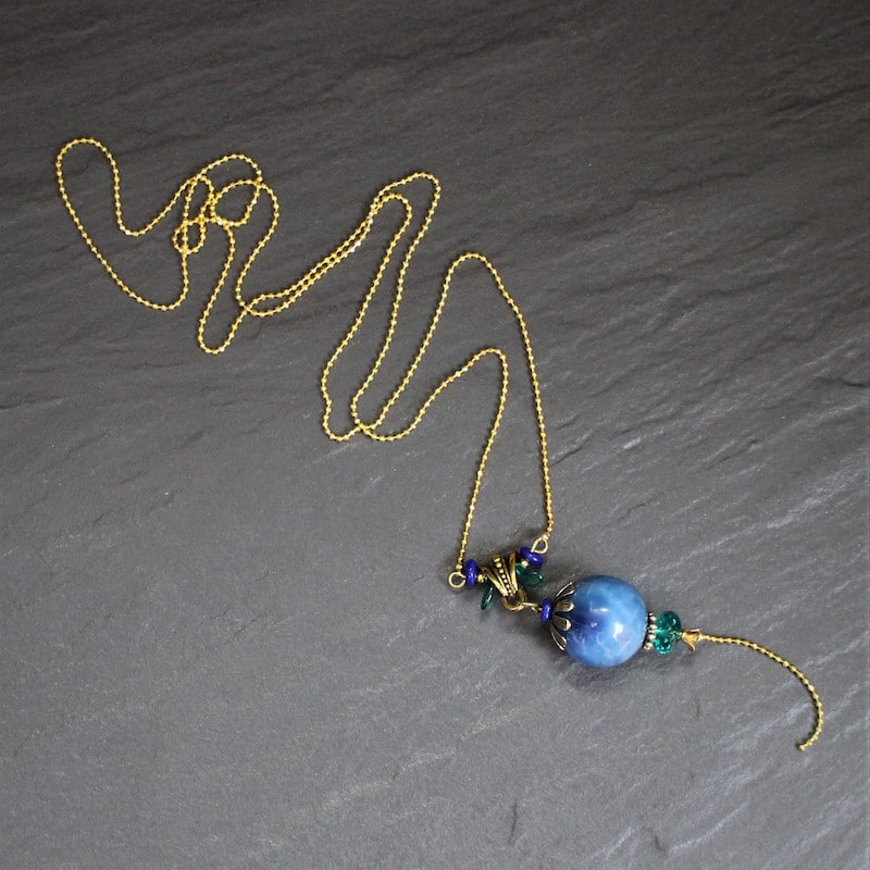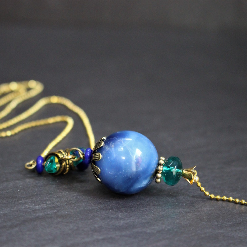 Laiton doré sans nickel, célestine et pâte de verre.