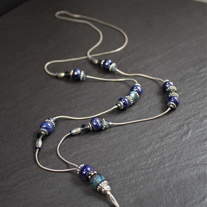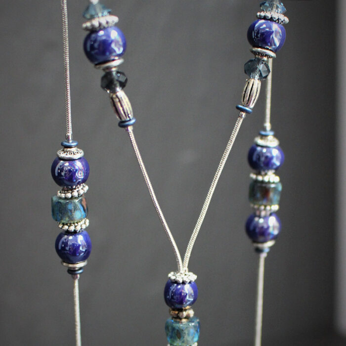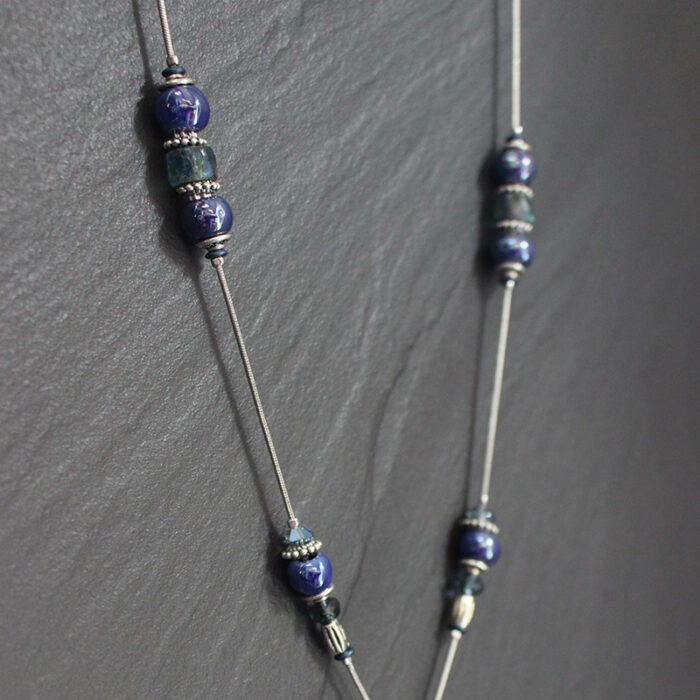 Laiton argenté sans nickel, céramique et pâte de verre.