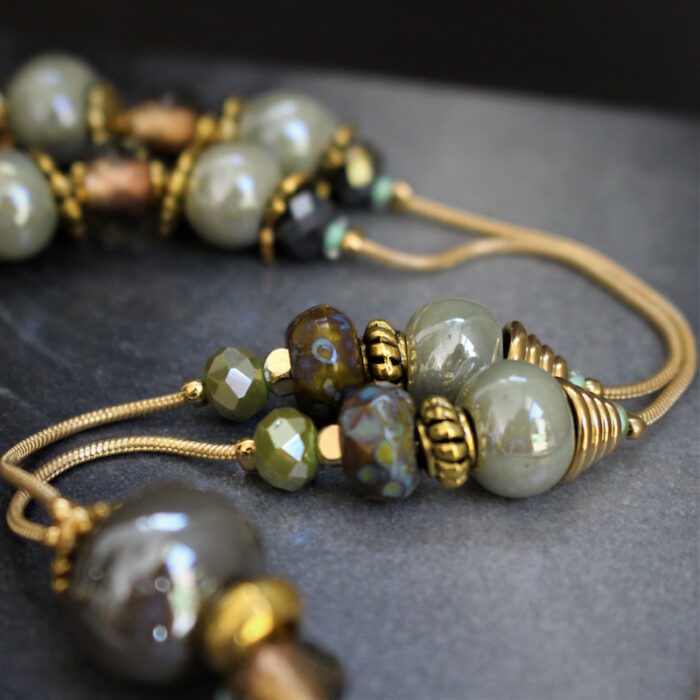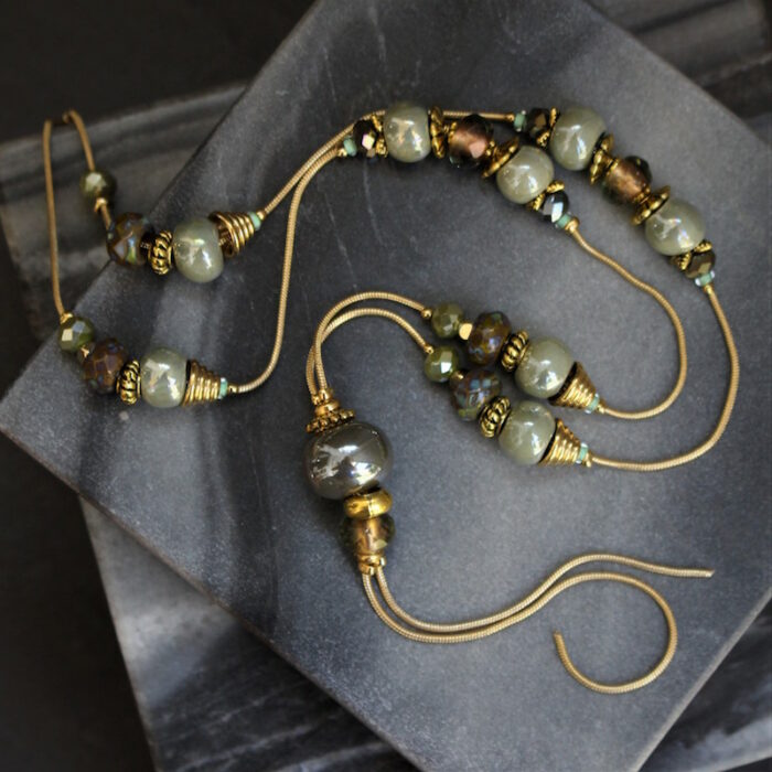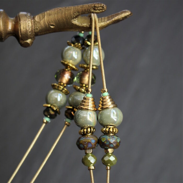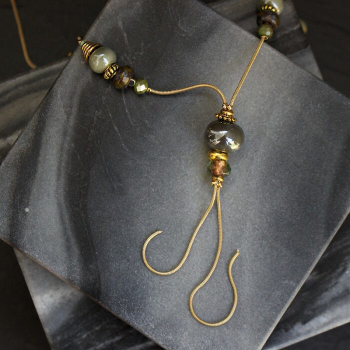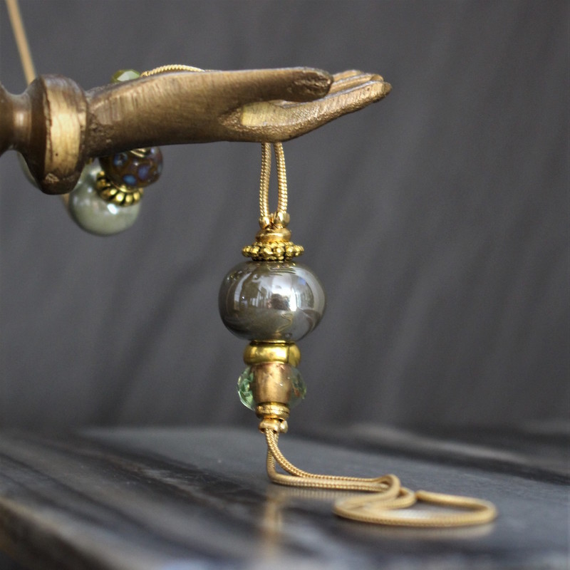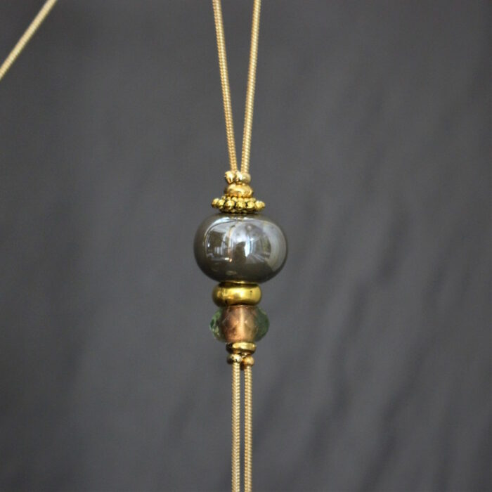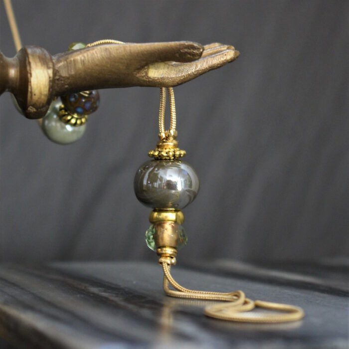 Laiton doré à l’or fin, céramique et pâte de verre.