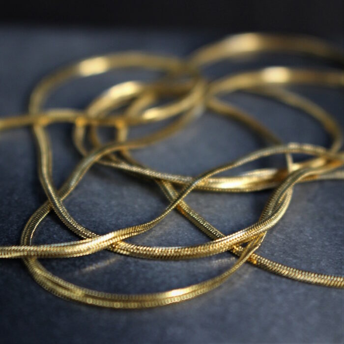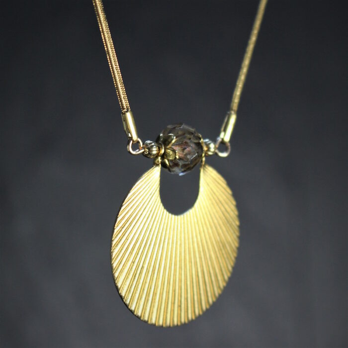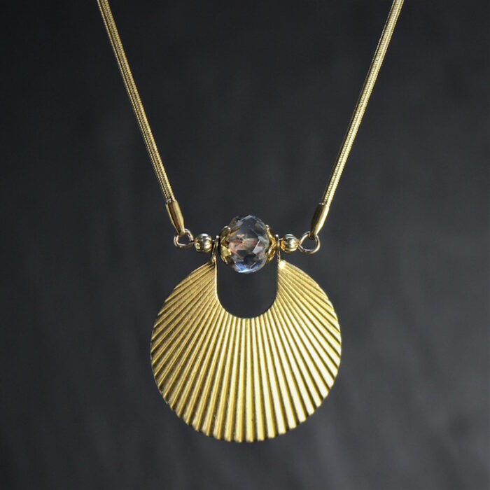 Acier inoxydable, laiton doré à l’or fin, émail et Pâte de verre.