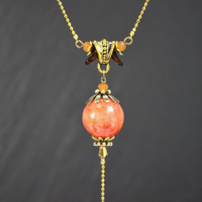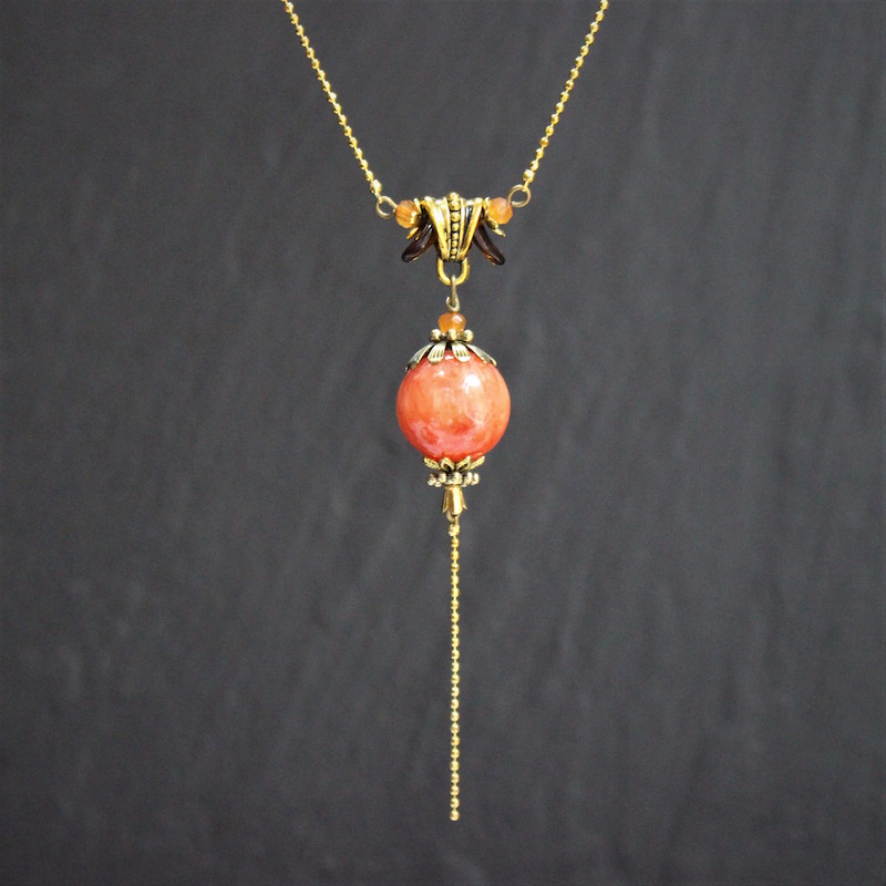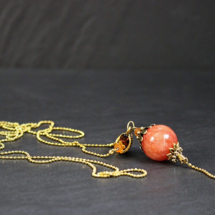 Laiton doré sans nickel, pierre de montagne et pâte de verre.