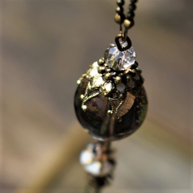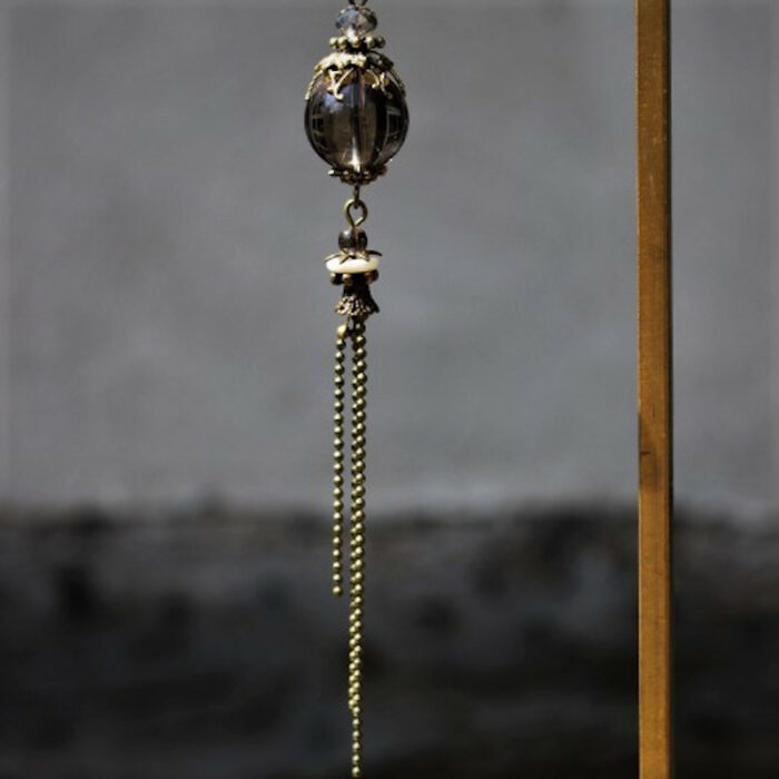Laiton bronze doré à l’or fin, quartz, nacre et émail.